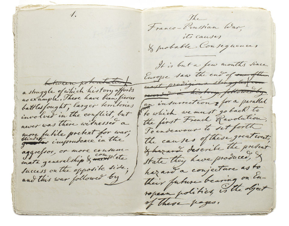 Manuscript, working draft, entitled "The Franco- Prussian War, its causes & probable Consequences