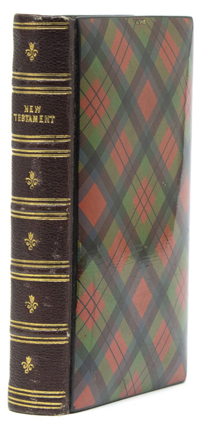 London: T. Nelson and Sons, 1870. 1 vols. 12mo. Mauchline Ware binding of wooden boards with a red, green blue and black tartan design transferred from paper onto sycamore boards and heavily varnished, with “M’Duff” stamped in gold at the upper margin of the upper cover, maroon morocco spine in six compartments tooled in gold, a.e.g.; former owner’s signtures on upper blank, minor rubbing to binding but nonetheless very good. 1 vols. 12mo. A charming little volume in a lovely tartan binding. Maggs, Bookbinding in the British Isles p. 202