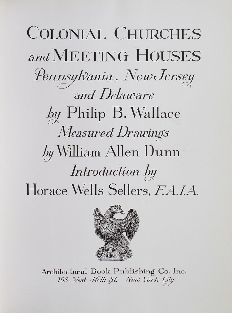 Colonial Churches and Meeting Houses Pennsylvania, New Jersey and Delaware. Intro. by Horace Wells Sellers