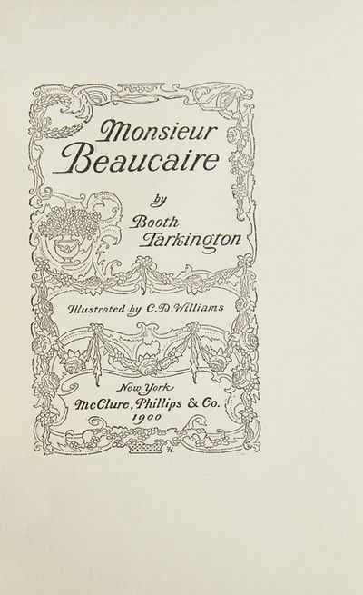 New York: McClure, Phillips & Co, 1900. First edition, first issue, with the publisher’s seal measuring one-half inch. Illustrated by C. D. Williams. 128, [1]pp. 1 vols. 8vo. Original red cloth gilt, t.e.g. Fine, bright copy. In half morocco slipcase and cloth chemise. First edition, first issue, with the publisher’s seal measuring one-half inch. Illustrated by C. D. Williams. 128, [1]pp. 1 vols. 8vo. After years of collecting rejection slips, Booth Tarkington’s first published work The Gentleman from Indiana (1899) made him “the most famous young man in America” and quickly led to the publication of “Monsieur Beaucaire, an 18th-century romance that Tarkington had actually written first but had not been able to place with a publisher. This popular work was turned into plays… operettas, and later movies starring Rudolph Valentino and Bob Hope” (ANB). Merle Johnson page 489