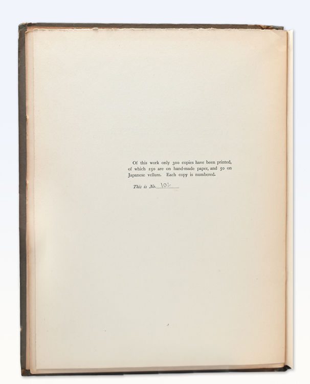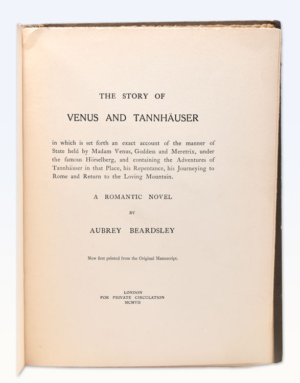 London: for Private Circulation, 1907. First edition, First printing from the original manuscrpt., one of 250 on hand-made paper. 88 pp. 1 vols. 4to. Gray boards, rebacked, else fine copy. Beardsley, Aubrey. First edition, First printing from the original manuscrpt., one of 250 on hand-made paper. 88 pp. 1 vols. 4to.