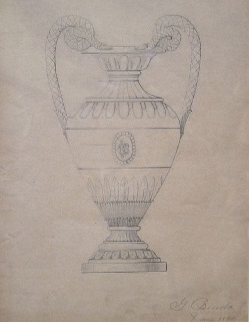 Original pencil design for ornamental vase. Signed “G. Benda / Xmas 1890” lower right