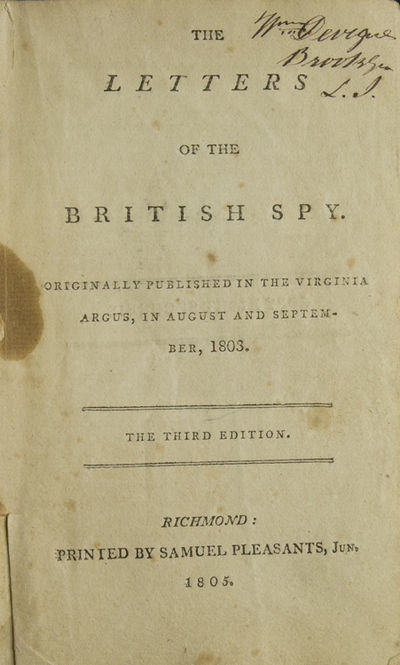 The Letters of the British Spy. Originally published in the Virginia Argus, in August and September, 1803