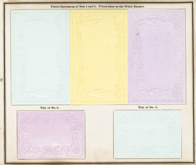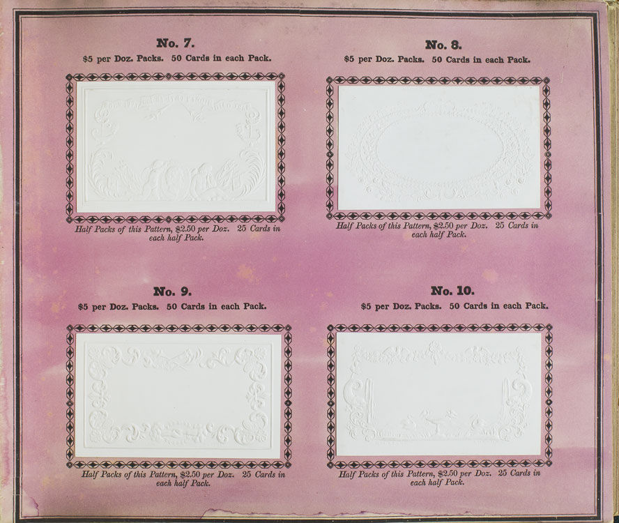 A remarkable specimen album in and of itself, all the more so for having belonged to one of America's most important engravers. We cannot say for sure, but it is entirely likely that if Gobrecht himself did not design many of the dies for this embosser, he may have used the album for his own work and possibly removed the cards which are no longer present.