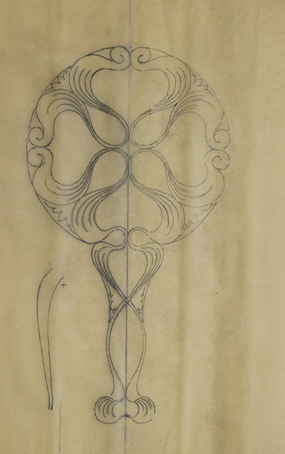 New York, Ca. late 19th century. 1 vols. Image 11-1/2 x 7-1/2 inches; matted to 15-1/2 x 11-1/2 inches. 1 vols. Image 11-1/2 x 7-1/2 inches; matted to 15-1/2 x 11-1/2 inches. George R. Benda worked in New York at the end of the 19th century. This fine rendering may have been a silver design for the noted firm of Black, Starr & Frost - Gorham.
