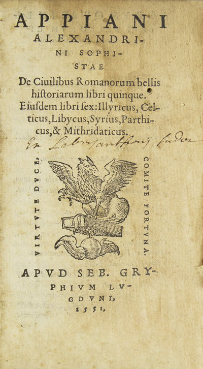 Lugduni [Lyon]: Apud Seb. Gryphium, 1551. First Gryphius edition. 1092, [2] p. (last 2 blank). 1 vols. 12mo. Early calf with red leather label, marbled endpapers; spine tips and joints a bit rubbed, title page a bit darkened, but a very good, sound copy. First Gryphius edition. 1092, [2] p. (last 2 blank). 1 vols. 12mo. Baudrier, H.L. Bib. lyonnaise,; VIII, p. 247; Aeams A-1346