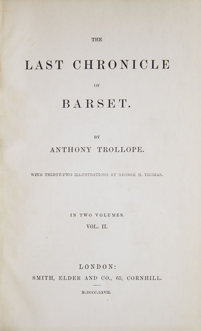 London: Smith, Elder and Co, 1867. With 32 illustrations by George H. Thomas. 2 vols. 8vo. Bound in original purple cloth, recased with original spine laid down, new endpapers in one volume, the other with inner hinges strengthened. With 32 illustrations by George H. Thomas. 2 vols. 8vo. Sadleir, Trollope, pp. 72-72; Wolff 6874