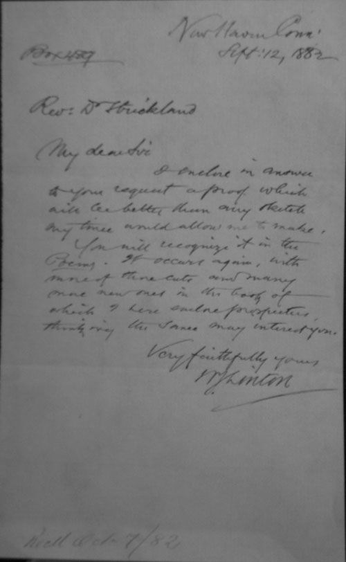 " ... There are so many of our family, all artists, in New York, some of whom devote their talents almost exclusively to Natural History Subjects. (James H. - my father an animal painter, James C. and Daniel C. my brothers, the former has illustrated several articles on natural history in the Harpers and Century Magazines, and the latter both writes and illustrates the same subjects) that I really hesitate in taking to myself the great honor you would confer for fear of appropriating what may have been intended for another ... "
