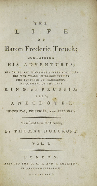 The Life of Baron Frederic Trenck; Containing His Adventures; his cruel and excessive sufferings, during ten years imprisonment, at the fortress of Magdeburg, by command of the late King of Prussia; also, Anecdotes, Historical, Political, and Personal. Translated from the German, by Thomas Holcroft