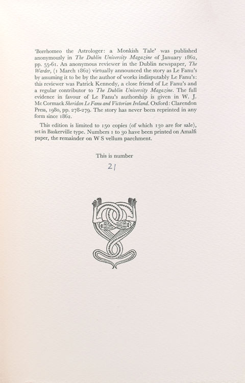 Borrhomeo the Astrologer. A Monkish Tale. Introduction by W. J. McCormack