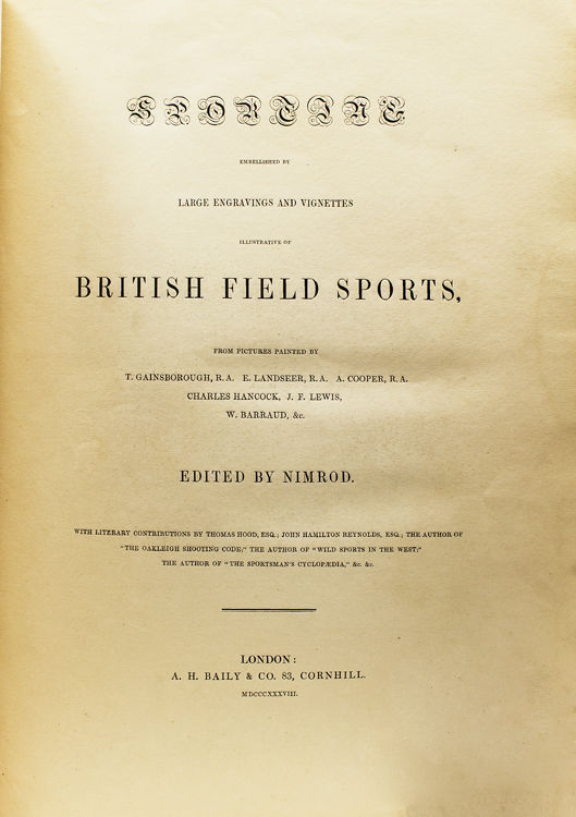 London: A.H. Baily, 1838. First edition. With 38 engravings from pictures painted by T. Gainsborough, E. Landseer, R.A., R.A., Charles Hancock, J.F. Lewis and W. Barraud, &c. 144 pp. 1 vols. Folio. Boards, black leather spine. Minor external rubbing to corners, some foxing. First edition. With 38 engravings from pictures painted by T. Gainsborough, E. Landseer, R.A., R.A., Charles Hancock, J.F. Lewis and W. Barraud, &c. 144 pp. 1 vols. Folio. Schwerdt I, p. 40