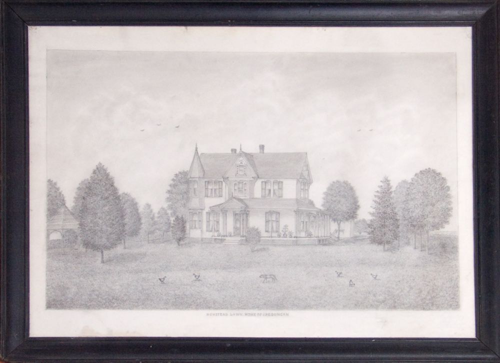 “Newstead Lawn, Home of JPC Duncan”: anonymous architectural rendering, pencil on paper