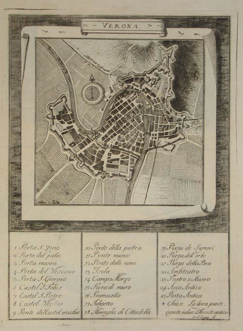 Collection of 22 engraved architectural plates of buildings and monuments in Verona