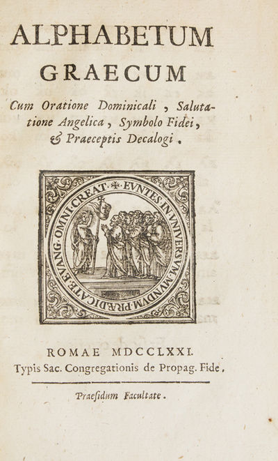 Rome: Typis. Sac. Congreg. de Prop. Fide, 1771. 15 pp. 1 vols. Small 8vo. Recent morocco backed marbled boards, a.e.g. Fine. 15 pp. 1 vols. Small 8vo. Birrell & Garnett 15; Smitskamp PO 205; Brunet I, 197