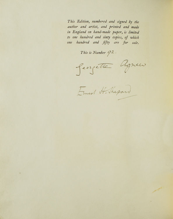 - SIGNED Illustrated by Ernest H. Shepard. 70, [2, blank] pp. 1 vols. 4to