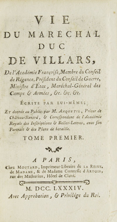Vie du Maréchal Duc de Villars ... écrite par lui-méme