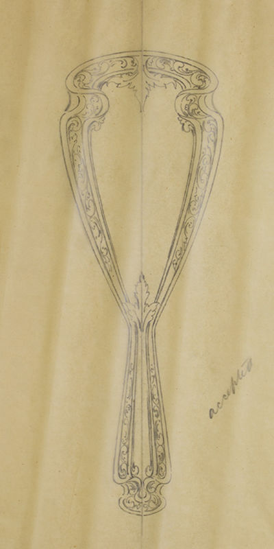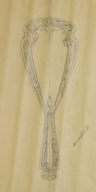 New York, Ca. late 19th century. 1 vols. Image 11 x 5-1/2 inches; matted to 15-1/2 x 11-1/2 inches. 1 vols. Image 11 x 5-1/2 inches; matted to 15-1/2 x 11-1/2 inches. George R. Benda worked in New York at the end of the 19th century. This fine rendering may have been a silver design for the noted firm of Black, Starr & Frost - Gorham.