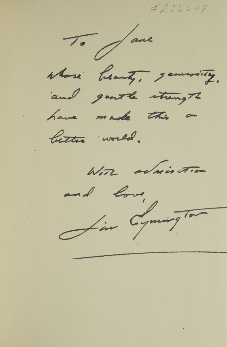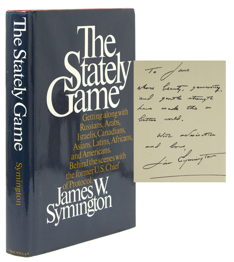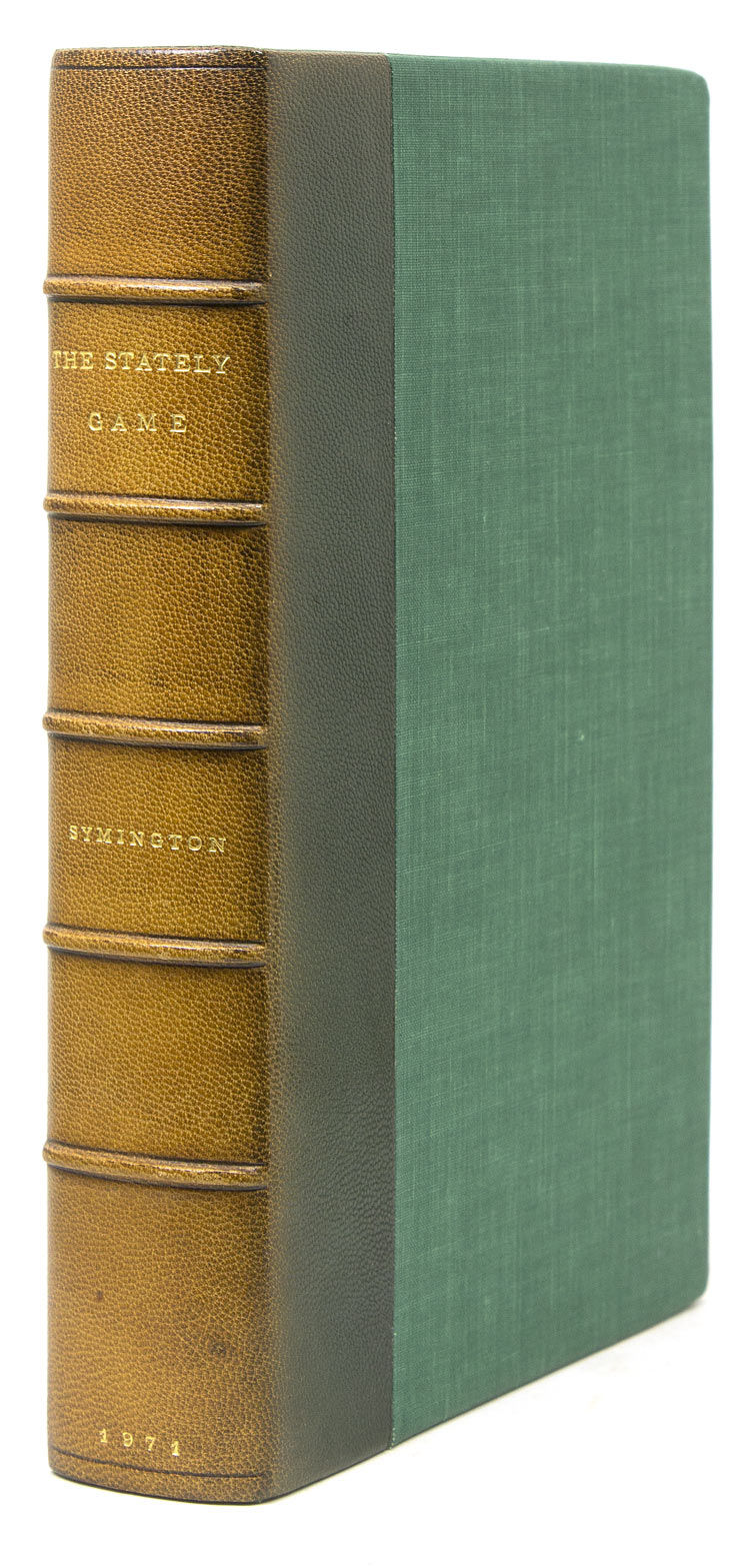 New York: Macmillan, 1971. First edition. Illustrated. 256 pp. 1 vols. 8vo. Russet cloth. Fine copy in dust jacket with light wear. In quarter green morocco slipcase with chemise. First edition. Illustrated. 256 pp. 1 vols. 8vo. Inscribed on the flyleaf by Symington, former U.S. Chief of Protocol, "To Jane [Engelhard], whose beauty, generosity, and gentle strength have made this a better world. With admiration and love, Jim Symington" Mill