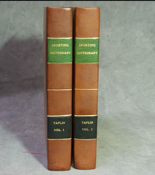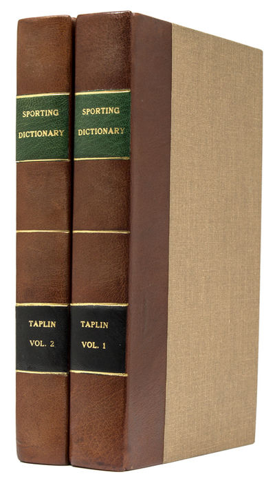 London: for Vernor and Hood, 1803. 5 plates. xii, 526, [2]; [iv] & 506, [2] pp. 2 vols. 8vo. Quarter modern brown calf and cloth. Fine, text with some toning, plates quite foxed. Signed Mr. Arthur Morgan, 1824. 5 plates. xii, 526, [2]; [iv] & 506, [2] pp. 2 vols. 8vo. Rilings writes that Taplin's work is, " a true dictionary, but mainly on the horse and dog as used in 'riding the hounds.'" Schwerdt IV, p. 248; Riling 340; Biscotti, Six Centuries of Foxhunting, p. 367