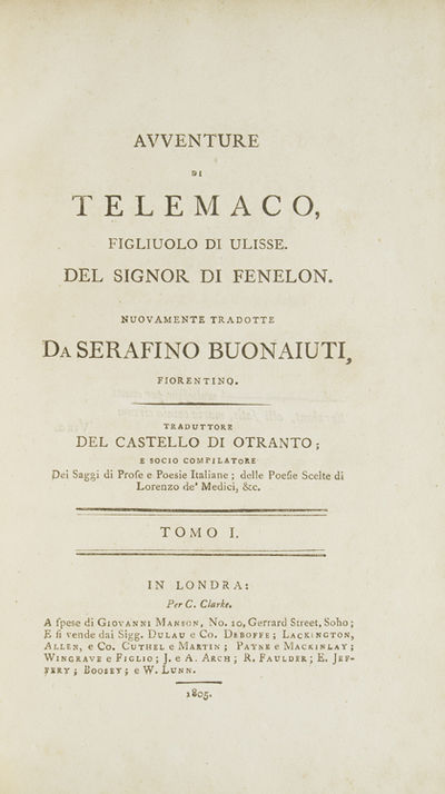 Les Adventures de Telemaque / Avventure di Telemaco. Facing texts in French and Italian