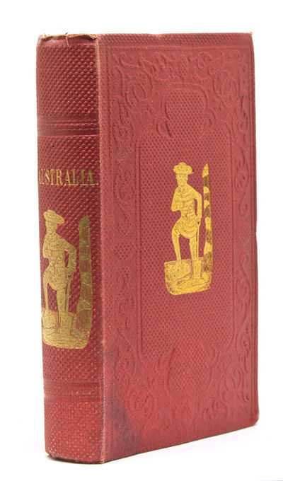 London: The Religious Tract Society, 1854. Lacking frontispiece. 1 vols. 12mo. The two parts bound together, fly title only on the second part. Original red stamped cloth by Davison, Binder, London with tag at back, gilt decoration and edges. Minor discoloration to front lower edge of front cover, front free endpaper and all preceding title removed, remains of pasted paper on endpapers, else a very good copy. Sold as is. Lacking frontispiece. 1 vols. 12mo. Contains an extensive description of the Australian gold fields, a segment on the Aborigines, a section for each on New South Wales, Victoria and South and Western Australia as well as agricultural information. Ferguson “Bibliography of Australia” 6298