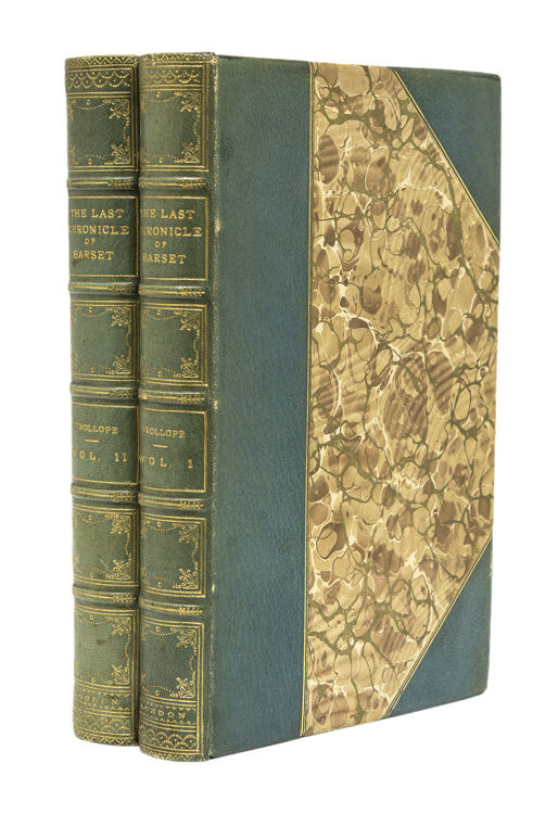 London: Smith, Elder and Co, 1867. First edition. Illustrations by George H. Thomas. 2 vols. 8vo. Half aqua morocco gilt. Trimmed about one half inch, some toning to spines, else a very good plus copy. First edition. Illustrations by George H. Thomas. 2 vols. 8vo. The last of the Chronicles of Barsetshire, a series of novels centered around the fictional county of Barsetshire, for which Trollope is best-known. These books concern social negotiations between the clergy and the gentry. The second in the series is generally the most famous, but this book, the last in the series, was Trollope's favorite. This series is regarded by many as Trollope's finest work. Sadleir 26