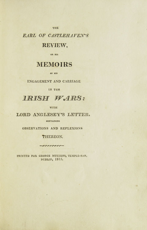 The Earl of Castlehaven's Review; Or, His Memoirs of His Engagement and Carriage in the Irish Wars. with Lord Anglesey's Letter Containing Observations and Reflexions Thereon Or His Memoirs of His Engagement and Carriage in the Irish Wars : with Lord Anglesey's Letter, Containing Observations