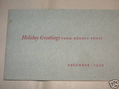 New York: Spiral Press, 1949. First Edition. Wraps. Fine. Printed wraps. Crane B21: 3060 total copies printed, this one of 225 with Frost's own imprint. INSCRIBED but not signed by Frost on the title page: "To the Hockings wherever they are/meditating the wrong Muse." Richard Hocking seems to have been an acquaintance of Frost's during the 1920s and 1930s, having graduated from Harvard in 1928 and earning a Master's there shortly after. When inscribing Christmas greetings, Frost would often not sign his inscription, or at the most simply initial it.