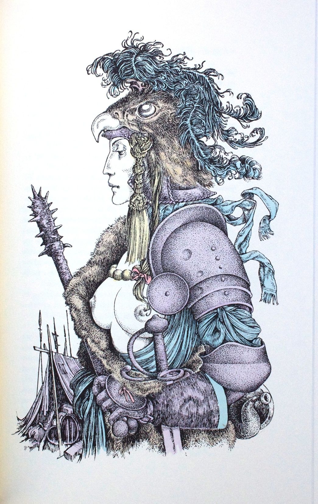 Westport: Limited Editions Club, (1976). Hardcover. Fine in glassine and a Fine slipcase. Virgil Burnett. Tall octavo (7" x 11") bound in full purple buckram stamped in gold on the front with an illustration by Virgil Burnett who has illustrated the book with numerous drawings including 8 full-page drawings with colors applied by hand at the Walter Fischer Studio. Copy #1087 of 2000 copies SIGNED by the artist on the colophon page. Monthly Letter laid in.
