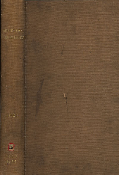 Basil: Ludovici Regis, 1621. Third Latin Edition. Hardcover. Very Good in a serviceable binding. Folio (8" x 12-1/2") bound in library buckram; irregularly paginated: [10], 502, [58] pages. Illustrated with 270 woodcuts, many full and half page, some signed with the monogram "RMD," and generally attributed to Hans Rudolf Manuel Deutsch (fl.1525-1572) or, less commonly, Blasius Weffring. Previously published in 1556 and 1561, this edition seems scarcer than either of the previous. PRINTING & THE MIND OF MAN 79: "The first systematic treatise on mining and metallurgy and one of the first technological books of modern times." Herbert Hoover, who first translated this book into English, described this title in his autobiography as "the first important attempt to assemble systematically in print the world-knowledge on mining, metallurgy, and industrial chemistry. It was the great textbook of those industries for two centuries and had dominated thought and practice all that time. In many mining regions and camps, including the Spanish South America, it was chained to the church altar and translated by the priest to the miners between religious services." The book combines a profound technical and financial knowledge of mining with an underlying interest in the health and daily routine of mine workers. The woodcut impressions are strong and dark. Complete but for the two fold-out diagrams lacking. As customary with this title, there is browning throughout, occasionally heavy. Small piece of title page repaired with no loss of text or illustration; ink names of David Stuart dated 1771 and Joseph Robertson dated 1830 on title page. Library bookplate on front pastedown and small ink number on the title page illustration; no other library markings except for numbers on the spine. An important and richly illustrated title.