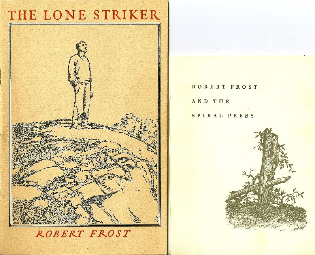 (New York): (Alfred A. Knopf), (1933). First Edition. wraps. Both items are Fine, housed together in a cloth chemise. A small pamphlet containing just the title poem and issued as Number Eight of the Borzoi Chap Books series. Crane A17: 2000 copies. This copy INSCRIBED and SIGNED by the author with his initials on the inside of the front cover: "For Joseph Blumenthal/from R.F." Blumenthal's Spiral Press printed most of Frost's Christmas greetings as well as several other titles including the 1930 Limited COLLECTED POEMS and the 1961 DEDICATION. THE GIFT OUTRIGHT. THE INAUGURAL ADDRESS. Also included is the small pamphlet--ROBERT FROST AND THE SPIRAL PRESS--a brief memoir by Blumenthal printed by him in an edition of 450 copies in 1963. A superb Association Copy.