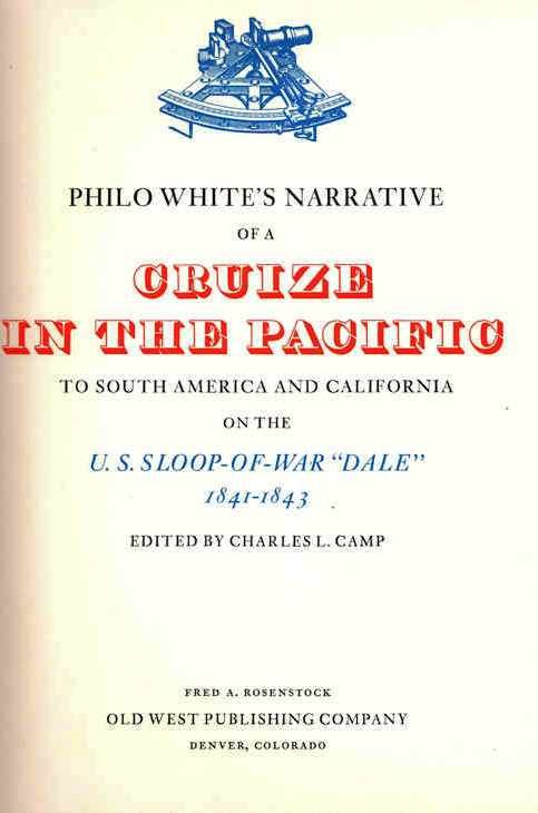 PHILO WHITE'S NARRATIVE OF A CRUIZE IN THE PACIFIC TO SOUTH AMERICA AND CALIFORNIA ON THE U. S. SLOOP-OF-WAR "DALE" 1841-1843