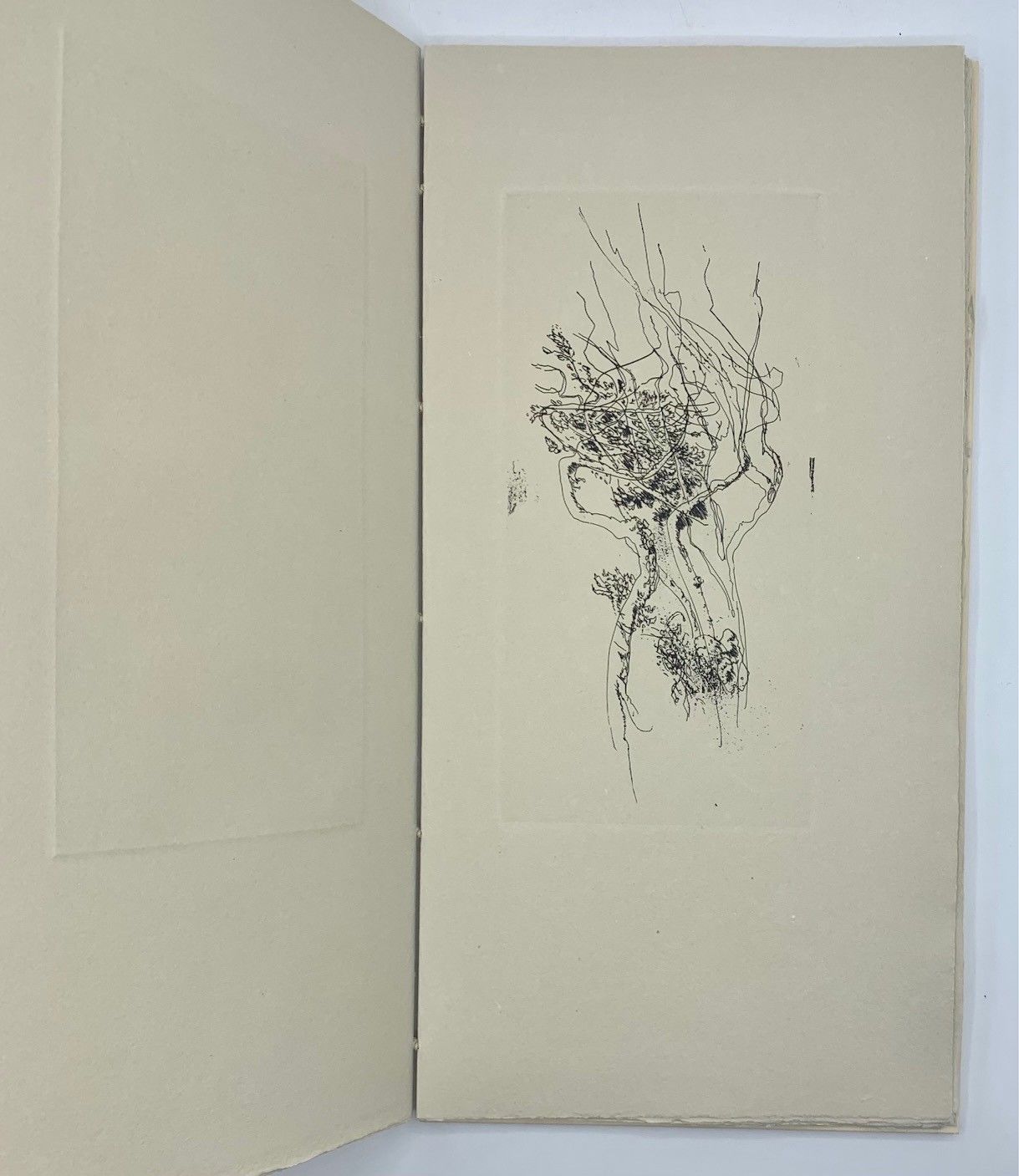 Salt Lake City: Red Butte Press, University of Utah, 1995. First edition. Hardcover. V. Douglas Snow. [56pp.] Thin folio [40 cm] Beautifully bound in cottonwood boards sewn in the Coptic style. Foreword by Page Stegner. Five original etchings by Utah artist V. Douglas Snow. Housed in rust colored cloth clamshell with paper label attached to spine. Edition of 75 copies, with 25 hors commerce. Signed on colophon "V.D. Snow" and numbered 21 of 75. A beautiful handcrafted book from the Red Butte Press. Fine. The clamshell is in good condition, with light moisture staining to the spine and along the top and fore-edge of the front panel, and four small splits in the cloth at the head and foot of the spine.