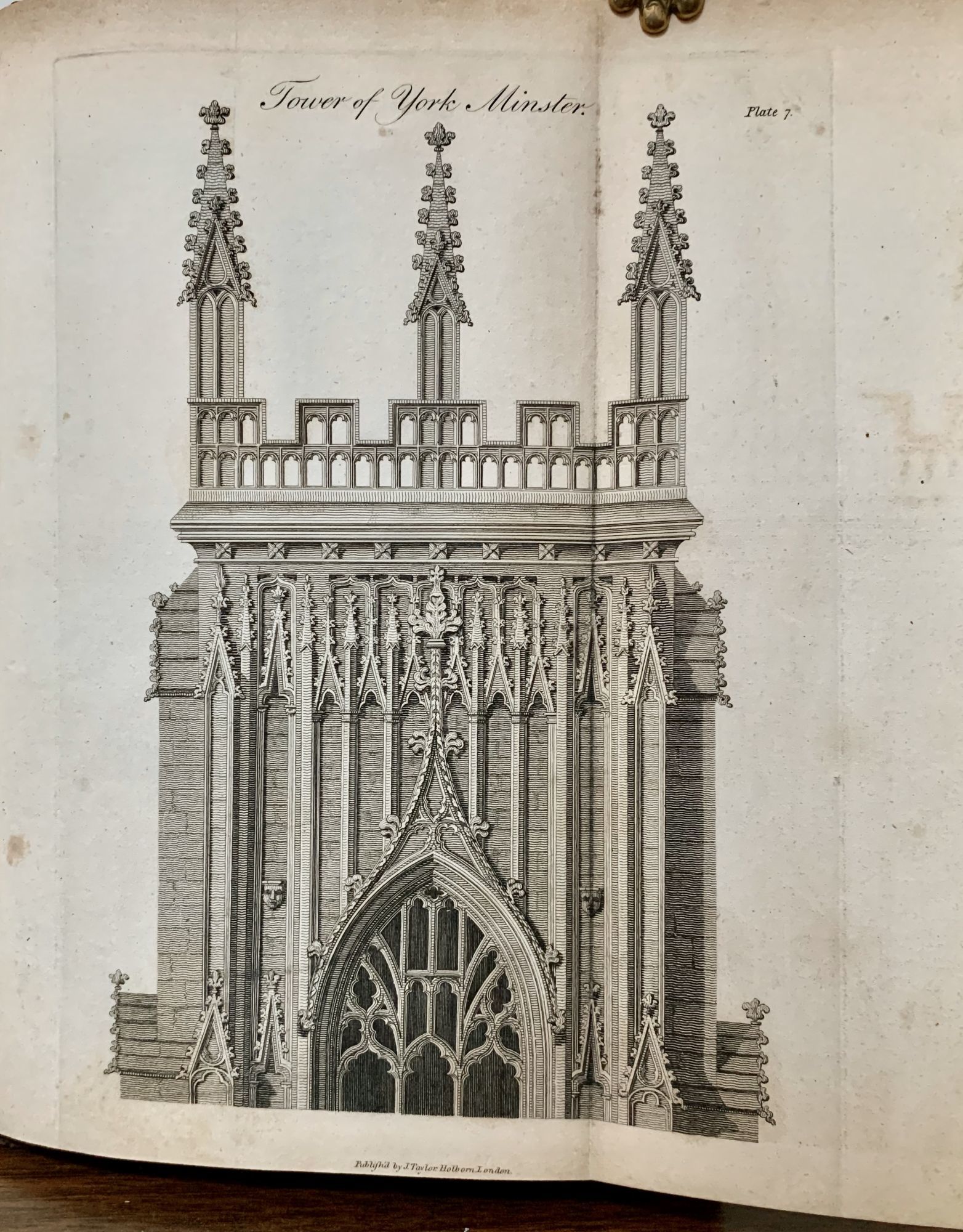London: J. Taylor, 1800. First edition. Hardcover. Contemporary brown morocco, spine label lettered in gilt, marbled boards. Very good. 176 pages. 23 x 15 cm. Ten full-page engraved plates. Essays by T. Warton, J. Bentham, Captain Grosse, and J. Miller. Errata, 2 pp. adverts. Detailed explanatory text for each plate. Modest rubbing to extremities and surface of boards. FOWLER 438.