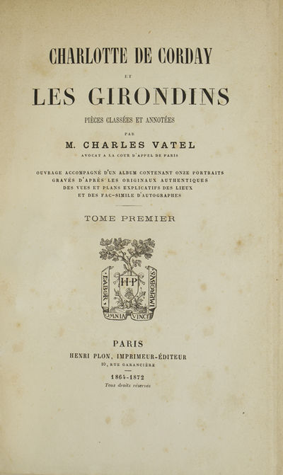 Charlotte de Corday et les Girondins. Pièces classées et annotées .