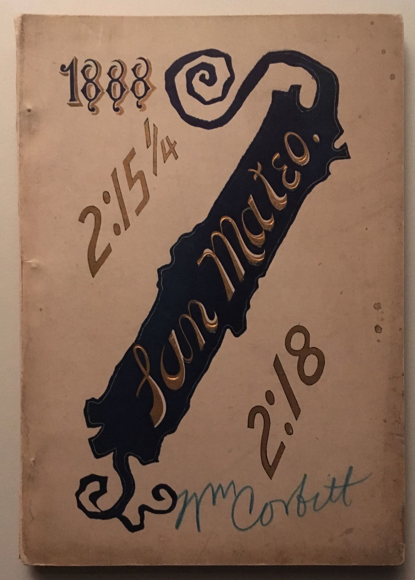 New York: compiled by Daniel Geary [printed by Winn Bros. & Judson, Cleveland, O.], 1888. Off-white paperwraps, lettered in blue and gilt (moderately soiled). Small 8vo.; 132, (4) pp. Corbitt's "First Annual Catalogue" of the pedigrees, descriptions, etc. of trotting stock on his San Mateo farm. Signature of Wm. Corbitt on front wrapper. A very good copy. No listings found on OCLC [one for the 1891 catalogue].