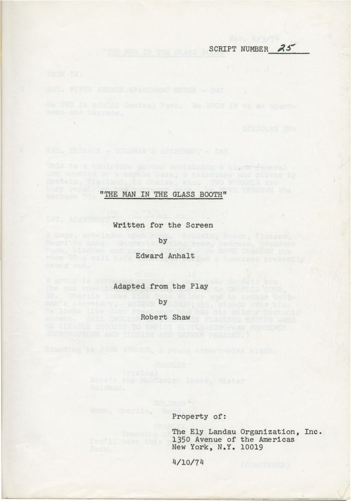 The Man in the Glass Booth (Original screenplay for the 1975 film)