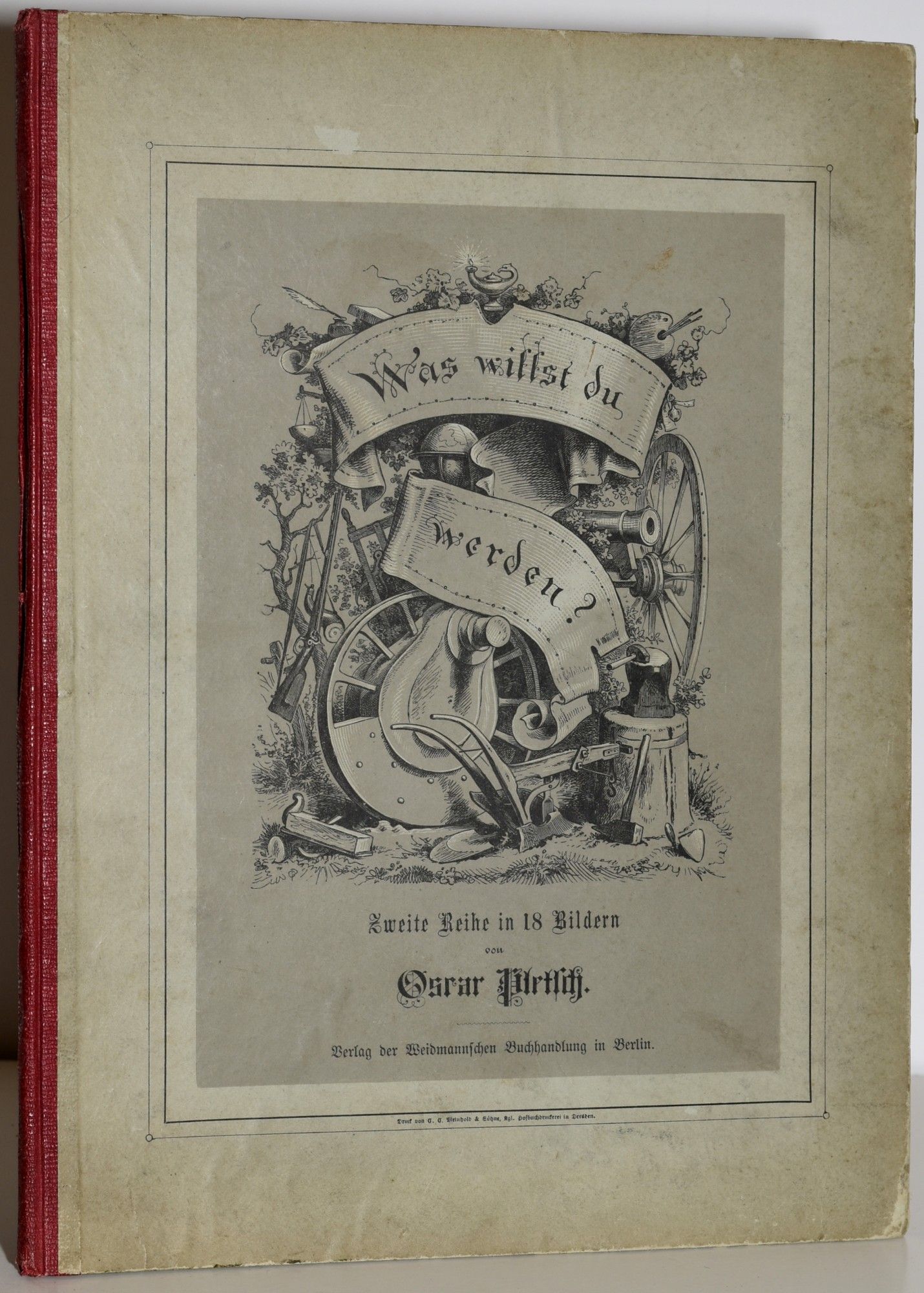 Weidmannsche Buchhandlung. Hard Cover. Very Good binding. Quite a nice copy; rhymes on each page illustrated with Oscar Pletsch's children's illustrations for children of various trades. Very Good binding.