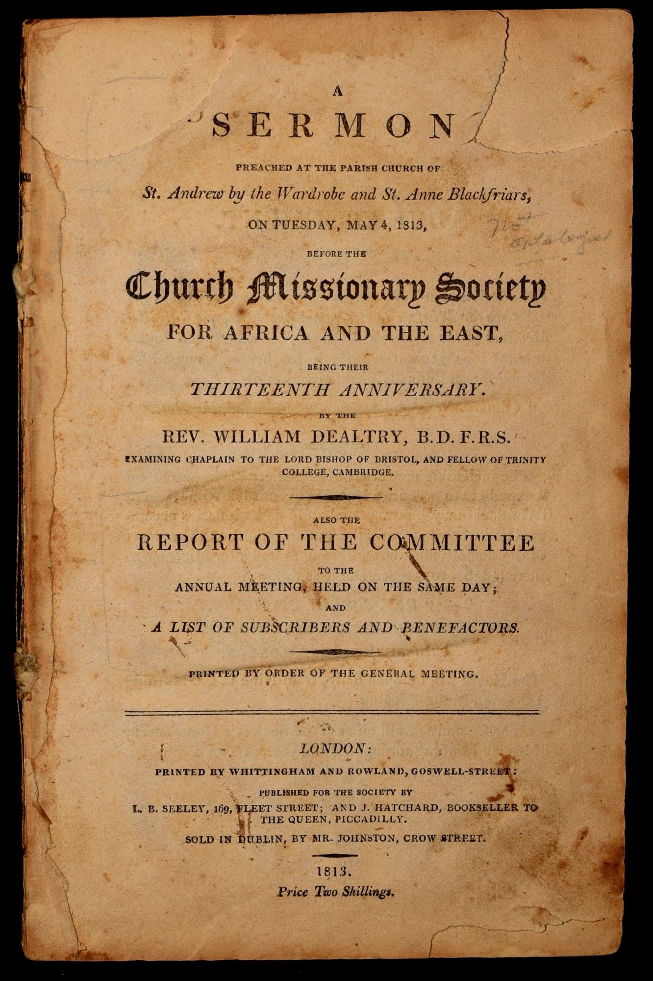 A Sermon Preached at the Parish Church of St. Andrew By the Wardrobe and St. Anne Blackfriars, on Tuesday, May 4, 1813, Before the Church Missionary Society for Africa and the East Being Their Thirteenth Anniverary.; Report of the Committee to Annual Meet