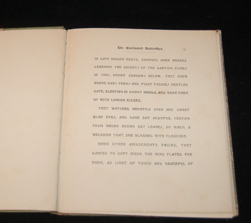 New York: Frederick A. Stokes Company, 1895. Hard Cover. Very Good binding. Mrs. S. M. Clark and the Author. No pencil or ink markings in text. Decorated cloth binding. Gilt lettering on front board, silver lettering on spine. Moderate edgewear with heavier wear at head and tail of spine and at corners. Small loss of cloth at tips of corners. Very Good binding.