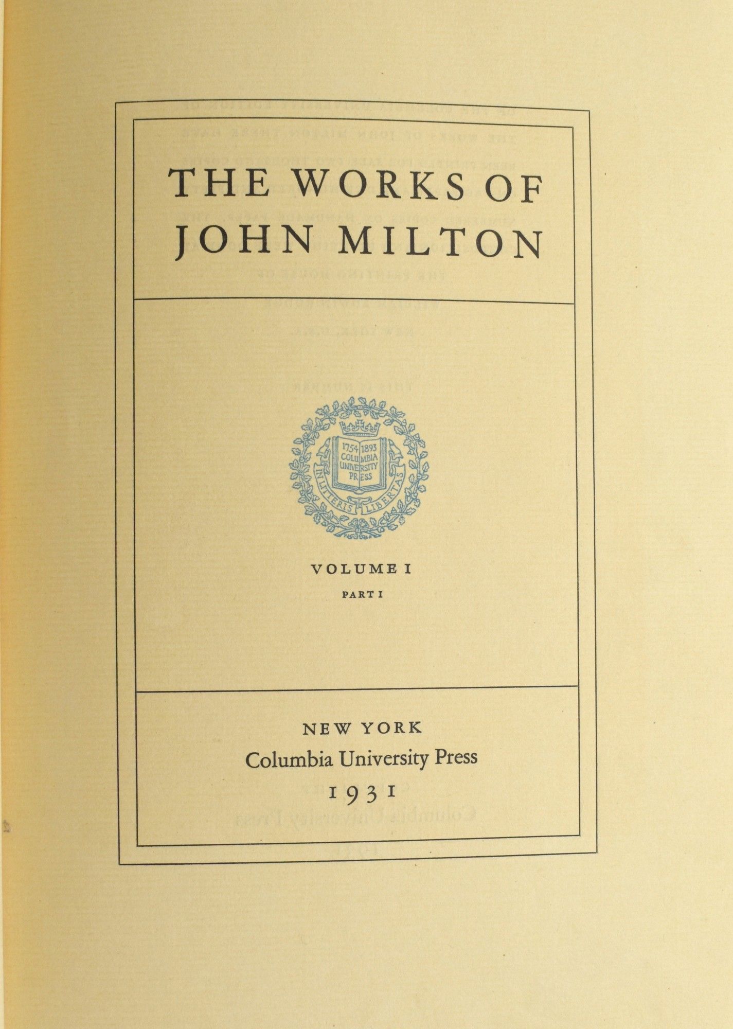THE WORKS OF JOHN MILTON 2 Volume Set; Vol I, Part I; Vol 1, Part II