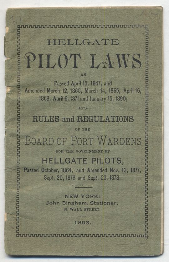 Hellgate Pilot Laws as passed April 15, 1847, ... and Rules and Regulations of the Board of Port Wardens for the Government of Hellgate Pilots..
