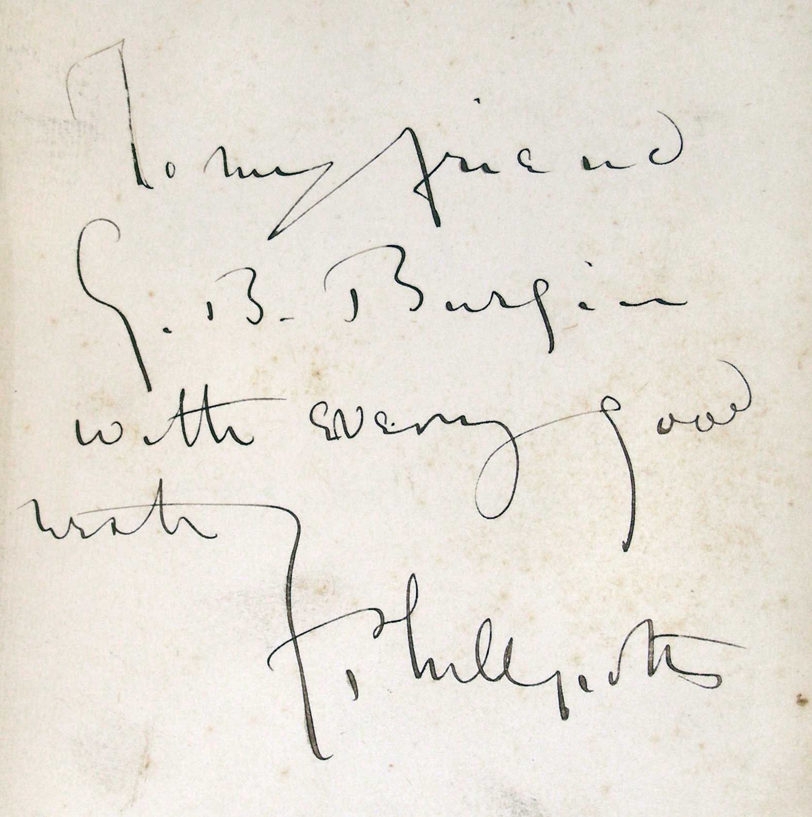 Bristol and London: J.W. Arrowsmith and Simpkin, Marshall, Hamilton, Kent, & Co., Ltd, 1891. Hardcover. Very Good. Hardcover. PRESENTATION COPY "To my friend G.B. Burgin with every good wish E. Phillpotts." He and Burgin collaborated on a play, '"His Lordship" (1892). Presentation copies from Phillpotts are scarce in the 1890s. Very good in original brown cloth with gilt title to spine and black title to front board. The front board is slightly bowed and the spine is somewhat cocked. The hinges are rubbed, there is minor soiling to the boards, and the corners are bumped. Bookplate of Alastair Forbes to front pastedown. The text remains bright although there is browning to margins of interior. ?Evidence of a repair to front and rear interior hinges.? 284 pages. LIT/051710.
