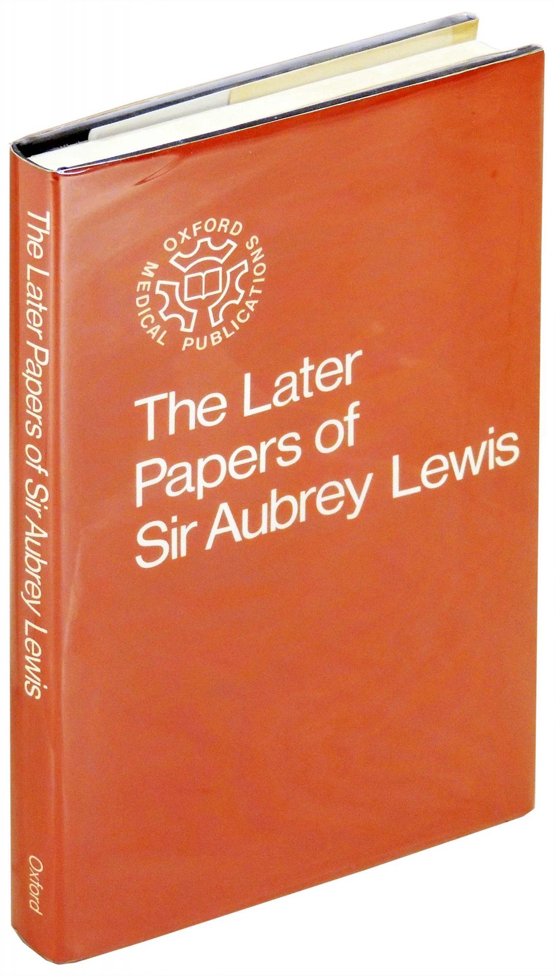 Oxford: Oxford University Press, 1979. Hardcover. Near fine in Near fine Dust Jacket. Hardcover. Includes 24 papers written during Lewis's later years about various subjects including: anxiety, hysteria, paranoia, psychopathic personality, periodicity, phobia, and the endogenous-exogenous dichotomy. Australian doctor Sir Aubrey Julian Lewis (1900 - 1975) was the first Professor of Psychiatry at the Institute of Psychiatry in London. Knighted in 1959, he is credited with raising the profile of the profession worldwide [Wikipedia]. Near fine in blue cloth boards with gilt title to spine. Previous owners signature in pen and original price stamped in ink to front endpage; otherwise, the interior is very clean. In a near fine price-clipped brown dust jacket with white title to spine and front panels. Minor wear to edges of jacket, else fine. 245 pages. PSYCH/062910.