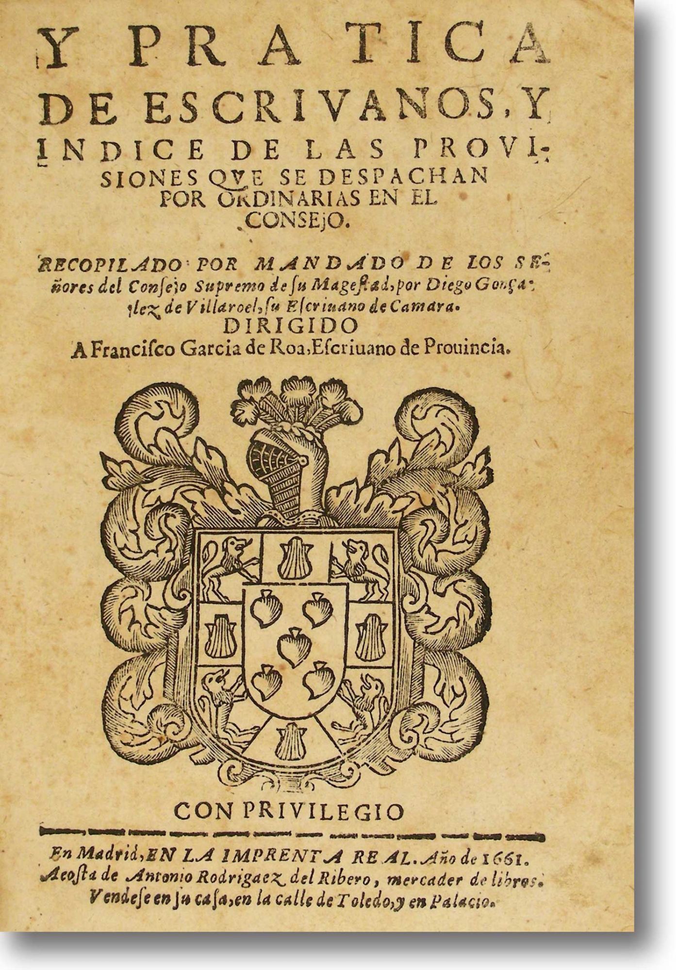 [Examen] Y Pratica [Practica] de Escrivanos, Y Indice de las Provisiones que se Despachan por Ordinarias en el Consejo