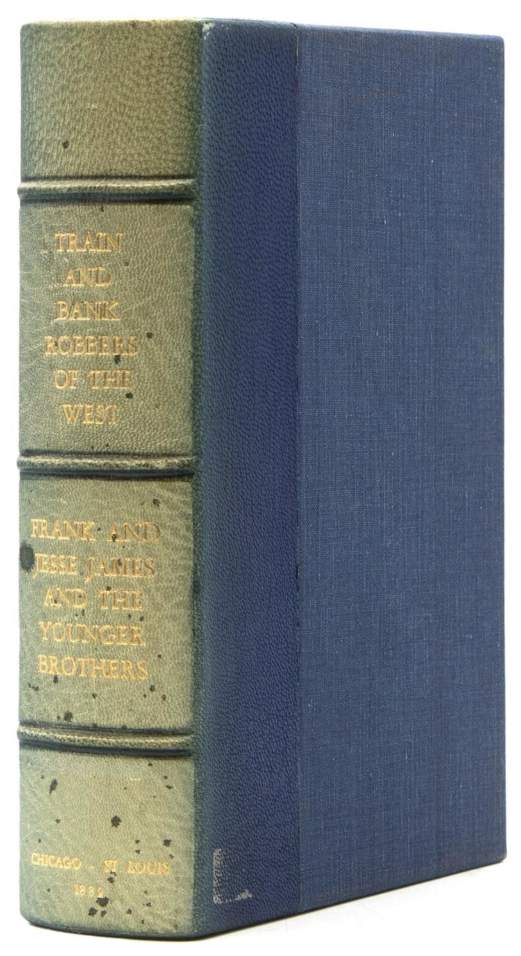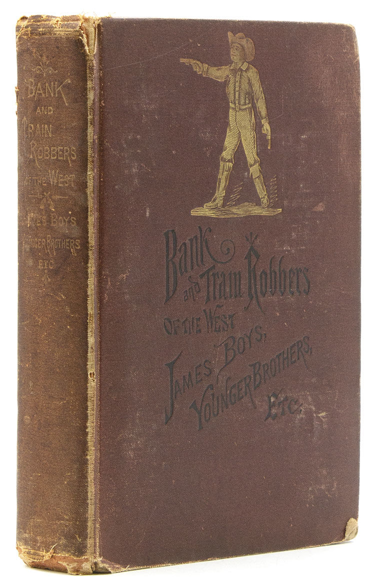 Chicago & St. Louis, 1882. 358, viii, [9]-287pp. plus plates. Original publisher's cloth, stamped in black and gilt. Extremities worn, binding rubbed and lightly soiled. Hinges tender. Modern bookplate and contemporary ownership inscription on front flyleaf. Light scattered soiling and foxing, a few small tears. Fair. In a blue half morocco and cloth slipcase, spine gilt. 358, viii, [9]-287pp. plus plates. A pulpy and cheaply-produced work on the James brothers and the Younger gang, with a frontispiece of Jesse James as he appeared after his death. Comprised of two parts, the first being about the James brothers and the second about the Youngers. "Part II is the same as Appler's GUERILLAS OF THE WEST, 1876 edition. Note the similarity of nearly all these books about the James brothers" - Adams. The quality of the production is such that finding a copy in nice condition is quite rare. Adams Six-Guns 1137; Howes A295