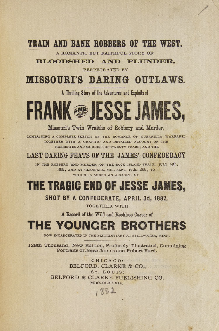 Train and Bank Robbers of the West. A Romantic but Faithful Story of Bloodshed and Plunder, Perpetrated by Missouri’s Daring Outlaws. A Thrilling Story of the Adventures and Exploits of Frank and Jesse James …