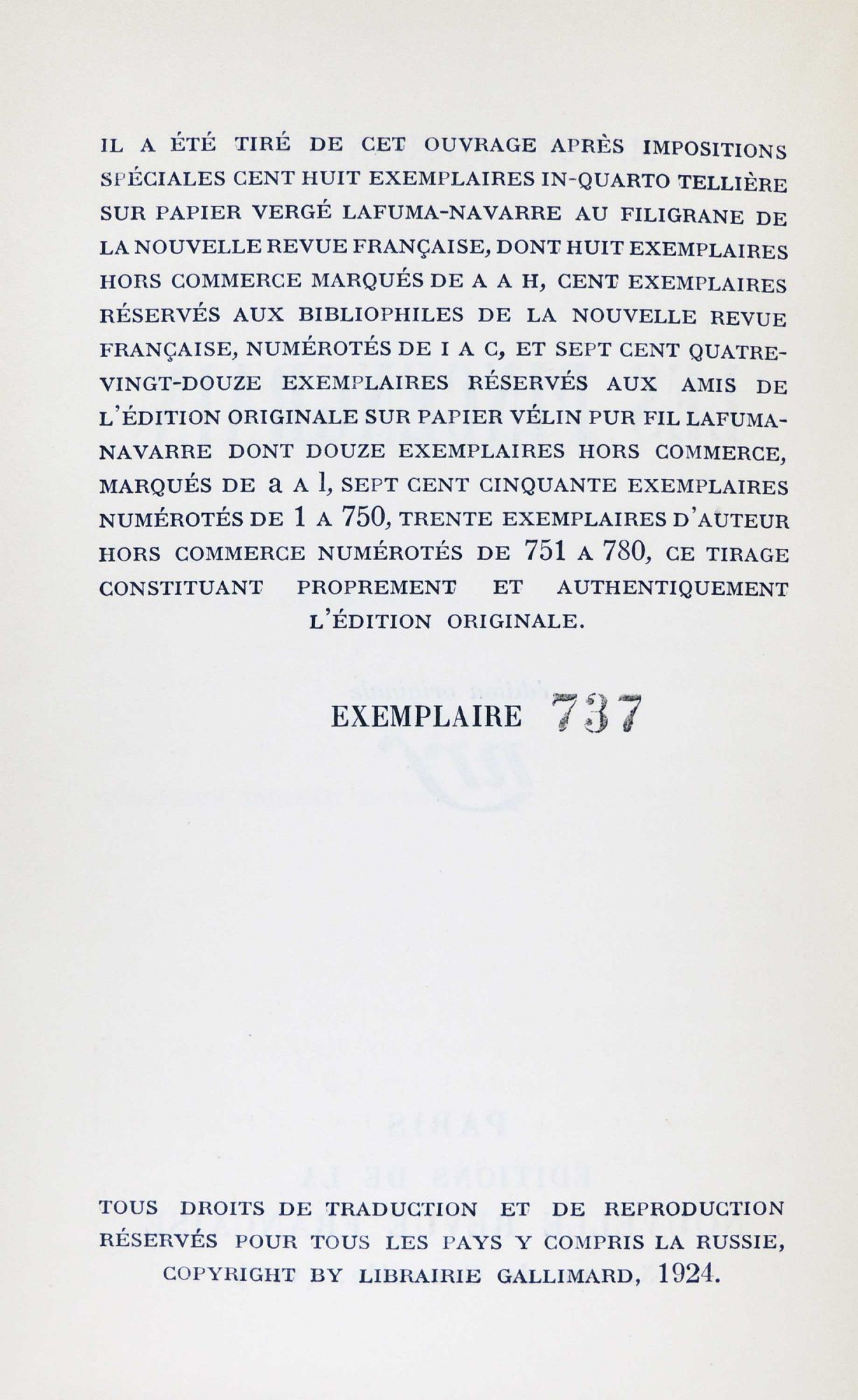 - Paris: Editions de la Nouvelle Revue Francaise, 1924