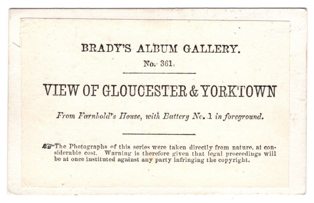 View of Gloucester & Yorktown: From Farnhold's House, with Battery No. 1 in foreground. (carte de visite)