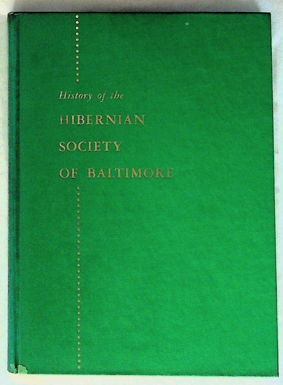 Baltimore: Hibernian Society of Baltimore, 1957. Hardcover. Very Good +. Hardcover. The Hibernian Society of Baltimore was established in 1803 by a group of Irish citizens as an organization to aid the increasing number of Irish immigrants arriving "friendless and forlorn." It continues to this day to honor and promote the Irish heritage of its members. In 1852, the Society resolved "that a committee be appointed to collect, collate, and publish in pamphlet or book form the history of the Society from its organization." After several failed attempts, this history was finally published in 1957, 105 years later. Includes a letter from the Hibernian Society of Baltimore. Green cloth covered boards with gilt title to front board and to spine. Small quarto. Previous owner's signature to front free end page. Foxing to half title page and to rear end page. Else is clean and bright with several illustrations. 57 pages. BALT/102010.